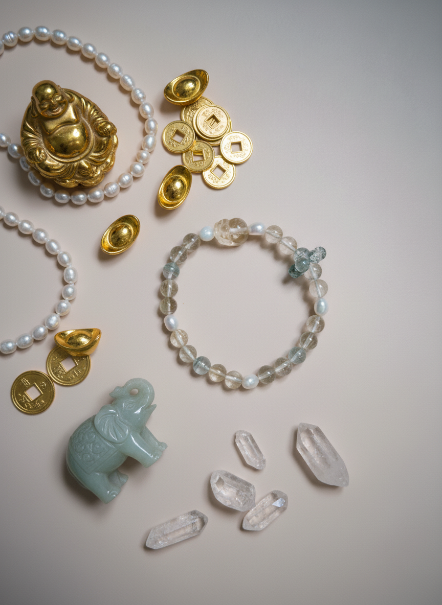 讓我們的招財手鍊助您提升富足能量!這款手鍊精心融合三種強大的水晶:神話中能招財護財的黃水晶貔貅、有「財富之石」美譽的金髮晶,以及促進事業成長的綠幽靈水晶。三種水晶相得益彰,不只能增添財運機會,更能提升自信,引領您與豐盛能量共振。戴上這些蘊含轉化力量的優質晶石,開啟您的成功豐盛之路。